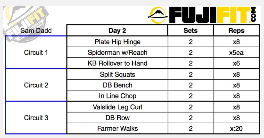 Każdy obwód jest wykonywany dwa razy, z krótkim odpoczynkiem przed przejściem do następnego. To przynosi całkowitą liczbę zestawów na trening do 6, co jest idealne. Liczba powtórzeń dynamicznych ruchów waha się między 5 a 8. Jest to idealne miejsce do rozwijania zarówno siły, jak i wytrzymałości. Jeśli szukasz sposobu na poprawę wyciskania na ławce, to patrzysz na zły program. Jeśli jednak chcesz wygrać zawody grapplingowe to ten trening dla BJJ jest doskonałym wyborem.