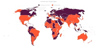 A nossa base de dados também revela lacunas generalizadas na proibição de outras práticas relacionadas com a escravatura. Em suma, apesar de a maioria dos países ter assumido obrigações juridicamente vinculativas através de tratados internacionais, poucos têm efectivamente criminalizado a escravatura, o tráfico de escravos, a servidão, o trabalho forçado, ou instituições e práticas semelhantes à escravatura.